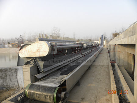 HQ-N型回转式清污机是综合了HQ型的优点改进而来的。它针对原传动结构在处理超长(污物宽度超过洞口宽度)、超高(污物高度超过减速器机架高度)污物时的难题,采用内置式电机,隐藏与机架内部,大大提高了电机户外防护能力,适用于存在大型污物(如整株毛竹等)的水电站及泵站。